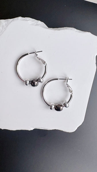 Elevate your everyday style with these elegant 25mm creole hoop earrings, beautifully designed here at Simply Ellie so unique to us. Each hoop features a lustrous ceramic bead in cream or black, delicately framed by metal rondelles that catch the light with every movement.