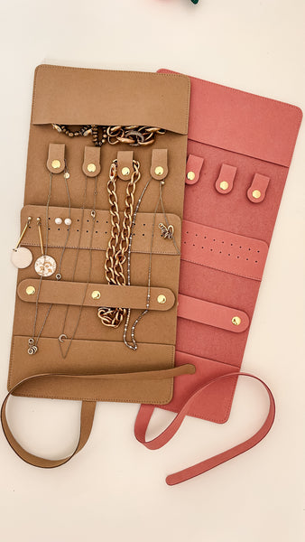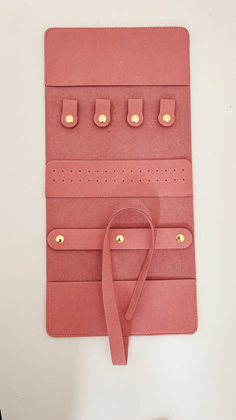 This faux suede jewellery roll combines elegance and style and is the ultimate companion for travel and storage. It provides excellent protection for all your jewellery and prevents all your delicate jewellery to become entangled.