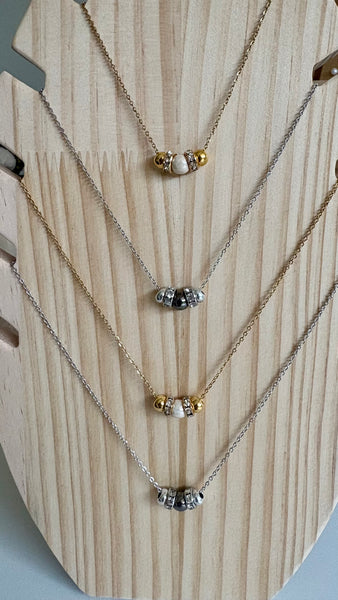 This beautiful piece features a stunning centrepiece of five carefully selected beads on a delicate stainless steel chain: